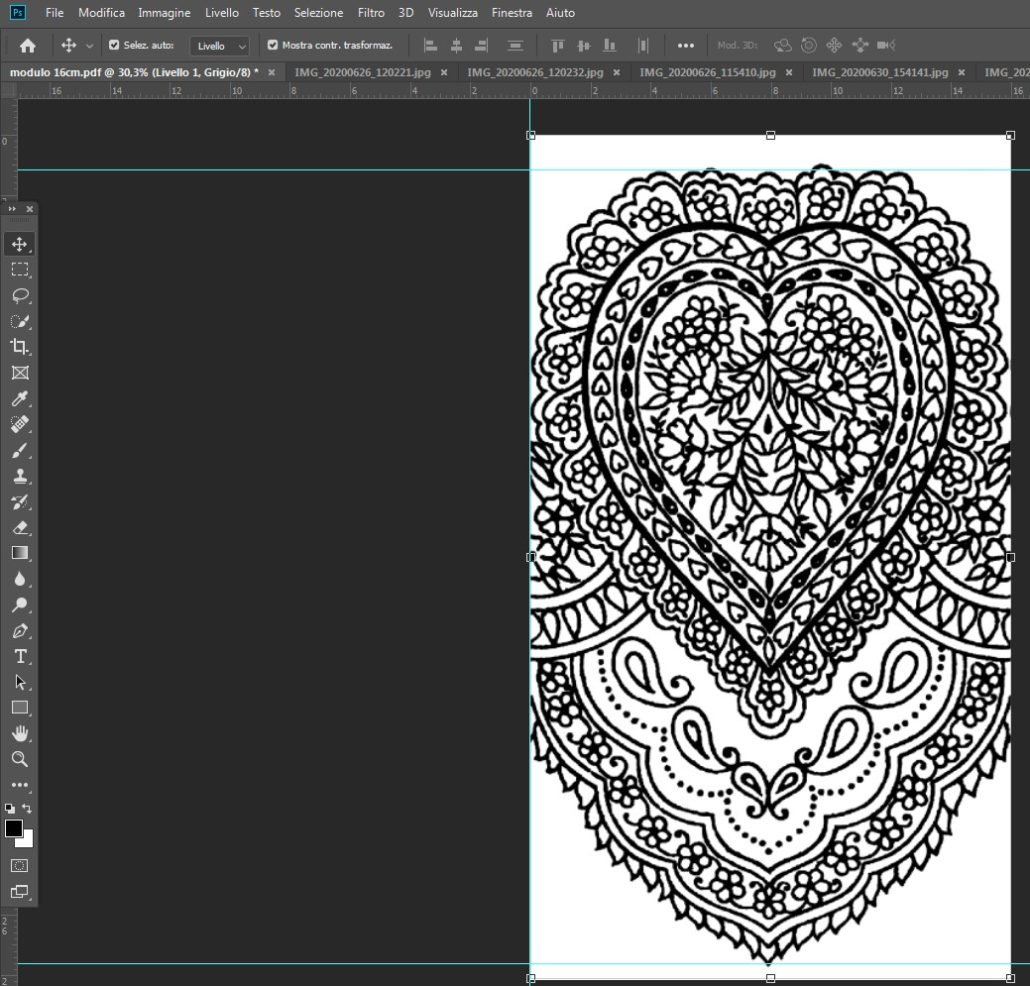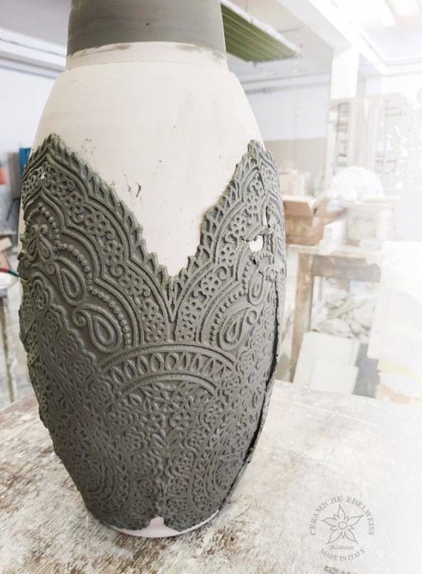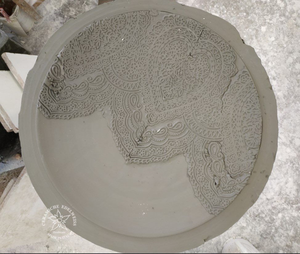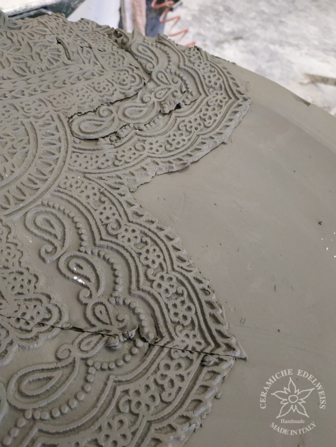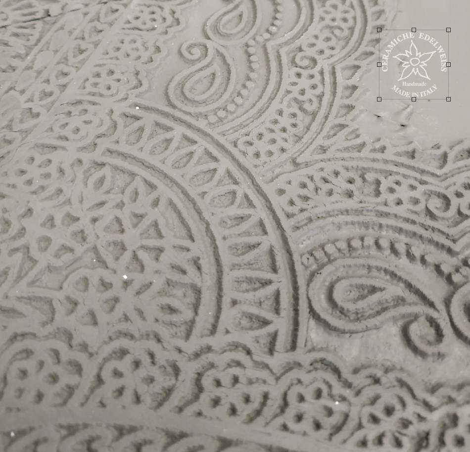 3. sempre con photoshop abbiamo rielaborato la base della trama del cliente ed abbiamo studiato come portarla sulla ceramica, in modo che sembri del pizzo pregiato appoggiato ai vari oggetti