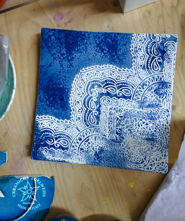 1.Il cliente ha esposto in modo sommario la sua idea di riprodurre una trama in pizzo sulla ceramica per richiamare i prodotti tessili