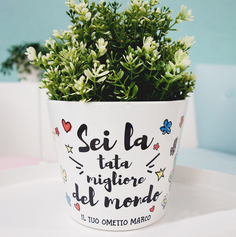 Jetzt ist es moeglich, die Botschaft direkt auf die Wase zu schreiben, fuer ein besonderes Geschenk. D L’azienda sta avendo un ottimo riscontro con i suoi clienti e ciò prova ancora una volta, quanto importante sia offrire un prodotto personalizzabile, che si differenzi dalla massa e che dia la possibilità di usare la propria fantasia per renderlo unico.