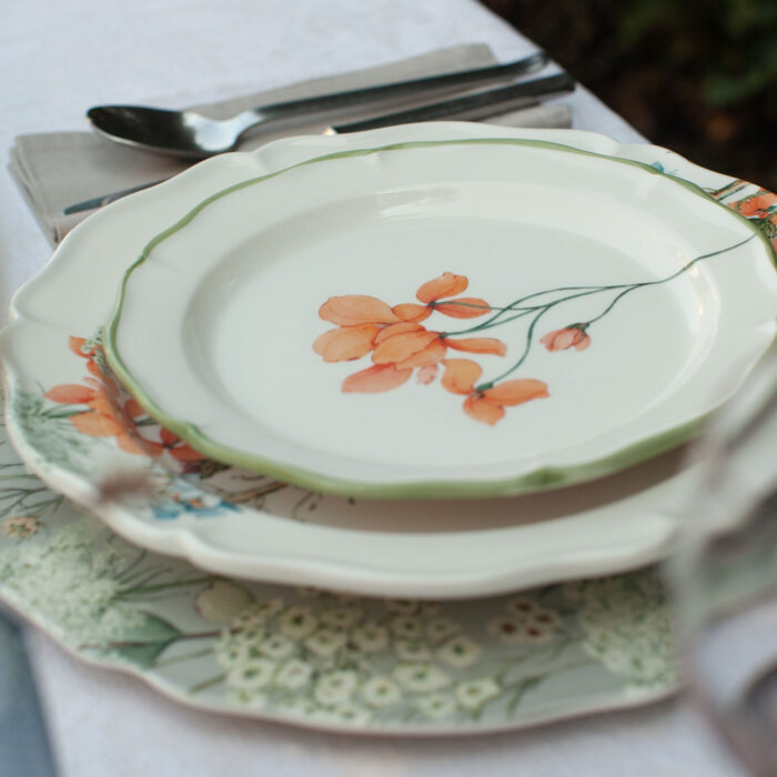 Die Kollektion Wildflowers fängt die Essenz der Wildblumen ein, mit Blumendekorationen, die einen Hauch von Frühling versprühen, und einer zarten, raffinierten Farbpalette. Ein komplettes Geschirr, das sich ideal für Mittag- und Abendessen im Freien eignet und dank seines Stils, der perfekt zu unseren Kollektionen Monochrome und Daisy passt, sehr vielseitig ist.