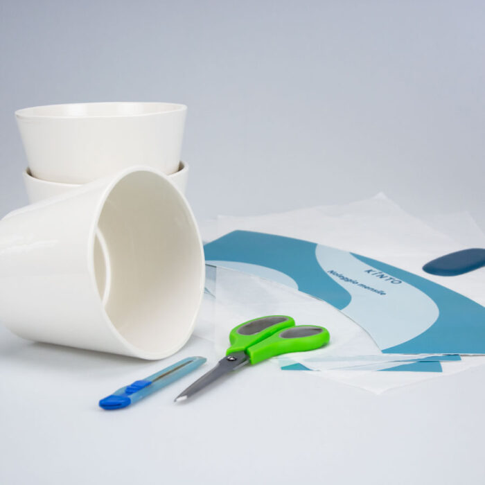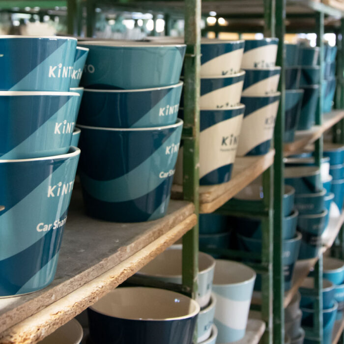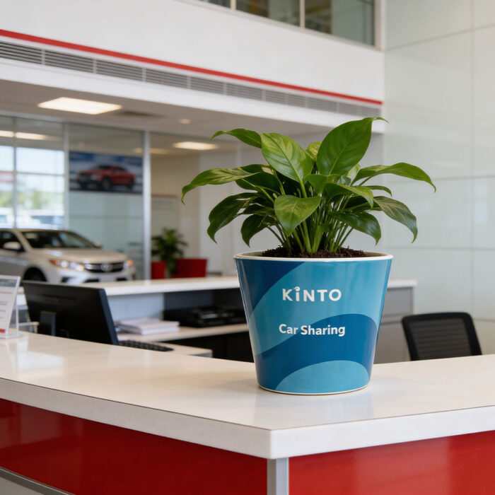 Hand-decorated ceramic plant pots featuring decals. A promotional item created for Kinto, Toyota’s mobility services brand.