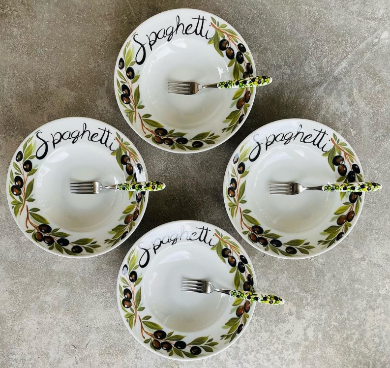 - Limone e fiore, limone e oliva, pomodoro e oliva, olive per una mise en place mediterranea, per dare un “sapore italiano” alla tavola, per ristoranti tradizionali, per locande italiane all’estero