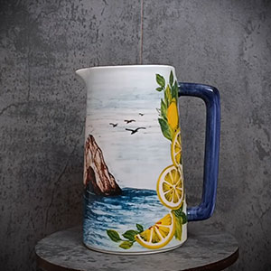 Porta in tavola il fascino dell’Italia con le nostre brocche in ceramica artigianale, ispirate alle località più amate del Bel Paese. Ogni brocca è un piccolo capolavoro decorato a mano e rifinito con decalcomanie artistiche che raccontano scorci marini, barche colorate e limoni mediterranei.