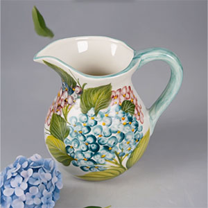 Un tocco di eleganza senza tempo per la tua tavola: questa brocca in ceramica, realizzata e dipinta a mano, è perfetta per chi ama lo stile classico e country chic. Il decoro con ortensie nei toni delicati dona raffinatezza e armonia, rendendo ogni apparecchiatura un momento speciale. Ideale sia come complemento d’arredo che per l’uso quotidiano.