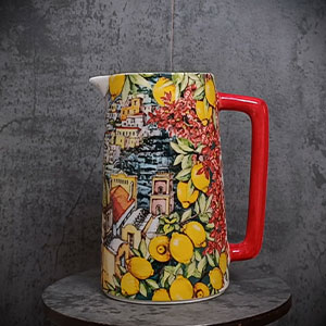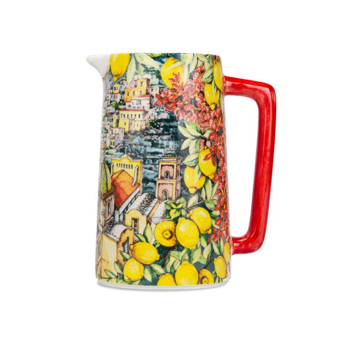 Porta in tavola il fascino dell’Italia con le nostre brocche in ceramica artigianale, ispirate alle località più amate del Bel Paese. Ogni brocca è un piccolo capolavoro decorato a mano e rifinito con decalcomanie artistiche che raccontano scorci marini, barche colorate e limoni mediterranei.