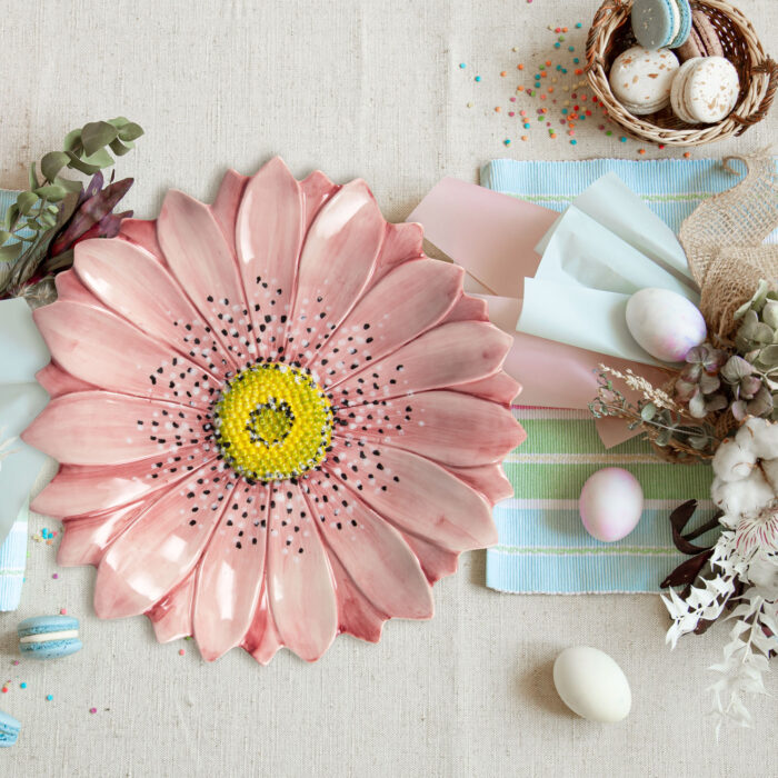 Centrotavola dalla forma elegante e distintiva della Margherita. I suoi petali in rilievo creano movimento e leggerezza sulla tavola, che sia in stile country o shabby chic o moderna.