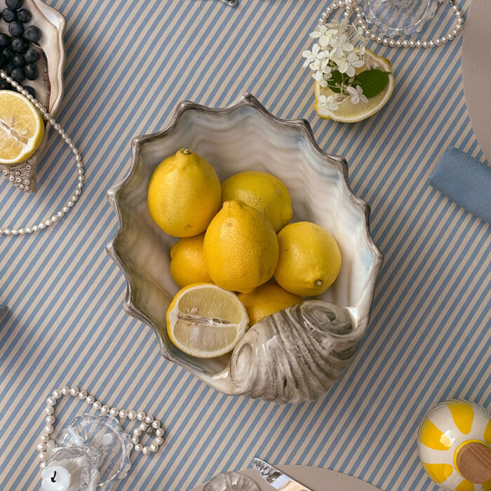 Ciotola in ceramica realizzata e dipinta a mano con la forma di conchiglia, ideale per portare in tavola tutto il sapore del Mediterraneo. Per servire primi piatti o fresche insalate di mare, zuppe e molluschi. Il design fresco la rende un oggetto funzionale e bello anche come complemento d’arredo.