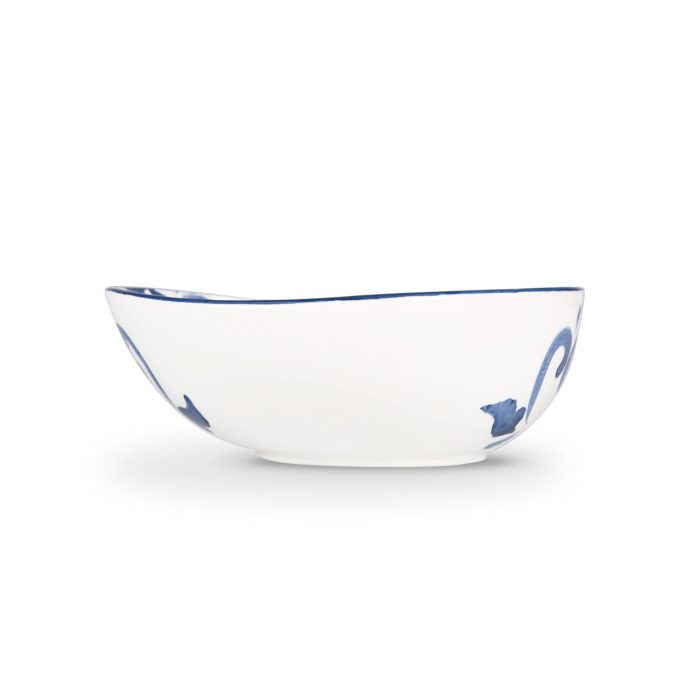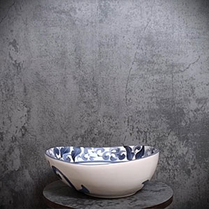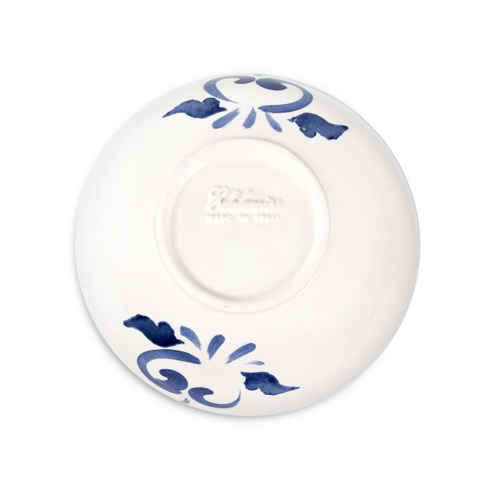 Ciotola in ceramica decorata limoni damascato blu da 19
