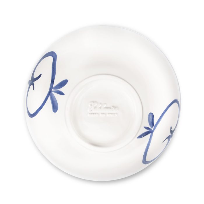 Ciotola in ceramica decorata limoni e damascato blu da 23