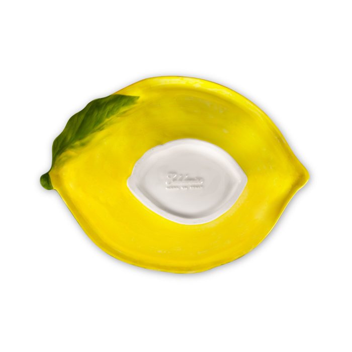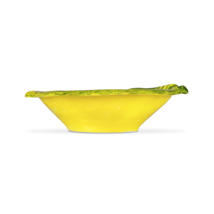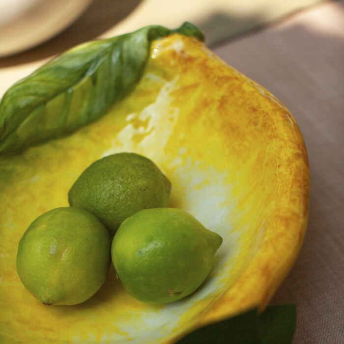 Ciotola in ceramica a forma di limone dipinta a mano. Dettagli e forme in rilievo sono esaltate da pennellate decise dai colori brillanti e vivaci, per dare un tocco di carattere tipicamente mediterraneo alla mise en place.