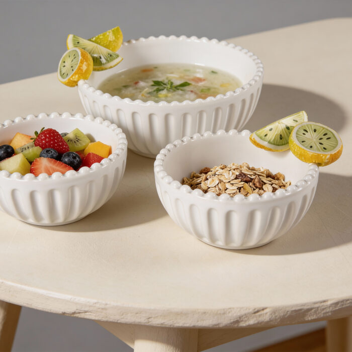 Disponibile in varie dimensioni per tutti gli utilizzi in cucina ed in tavola, come porta stuzzichini, salse, macedonia o gelato. Design minimal e dettagli unici in rilievo realizzati a mano.