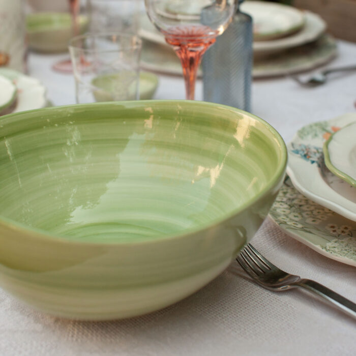 Pratiche, eleganti, moderne, semplici ma uniche. Le nostre ciotole monocolore sono caratterizzate da morbide pennellate concentriche tono su tono. Un fresco tocco di stile in tavola da abbinare come vuoi!