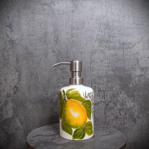 Il dispenser sapone è un accessorio funzionale e pratico, ideale per cucina o bagno. Realizzato in ceramica decorata a mano ed un beccuccio dosatore comodo e facile da usare.