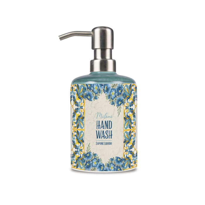 Il dispenser sapone è un accessorio funzionale e pratico, ideale per cucina o bagno. Realizzato in ceramica artigianale con un mix stilistico che unisce il decoro manuale alla più moderna tecnica della decalcomania.