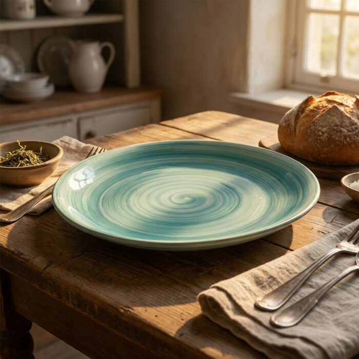 Piatto piano molto capiente e resistente grazie alla sua dimensione, ideale sia per occasioni speciali che per uso quotidiano.