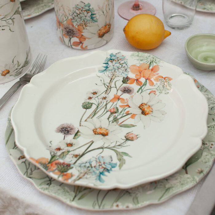 La Collezione Wildflowers cattura l’essenza dei fiori selvatici, con decorazioni floreali dal sentore di primavera e una palette di colori delicati e raffinati. Un servizio tavola completo ideale per pranzi e cene all’aperto, super-versatile grazie al suo stile che si accosta perfettamente alle nostre collezioni Monocolore e Margherite.