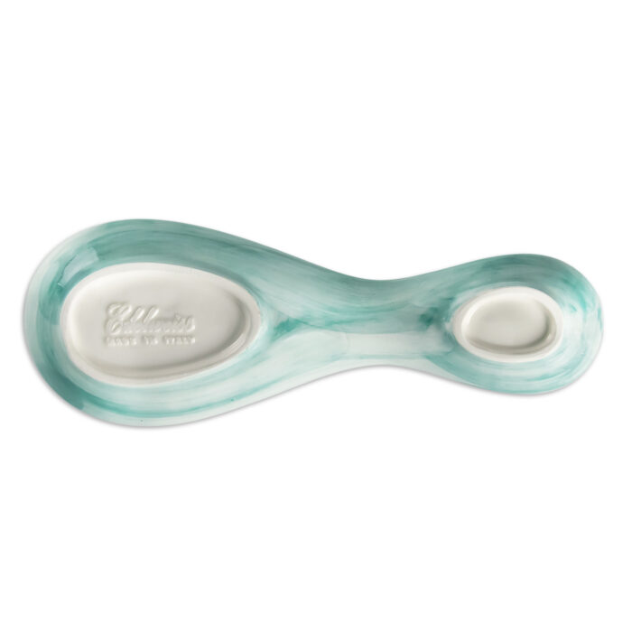 Pratico ed elegante poggiamestolo realizzato e dipinto a mano. Le sue proporzioni lo rendono adatto a qualsiasi mestolo o posata, la sua forma ergonomica ne facilita la presa.