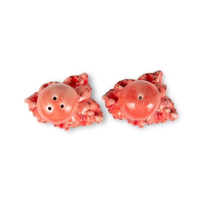 Set di sale e pepe in ceramica dipinta a mano, modellato a forma di polpo. Un oggetto unico, che unisce funzionalità e design originale, perfetto per decorare la tua tavola con un tocco marino e creativo.