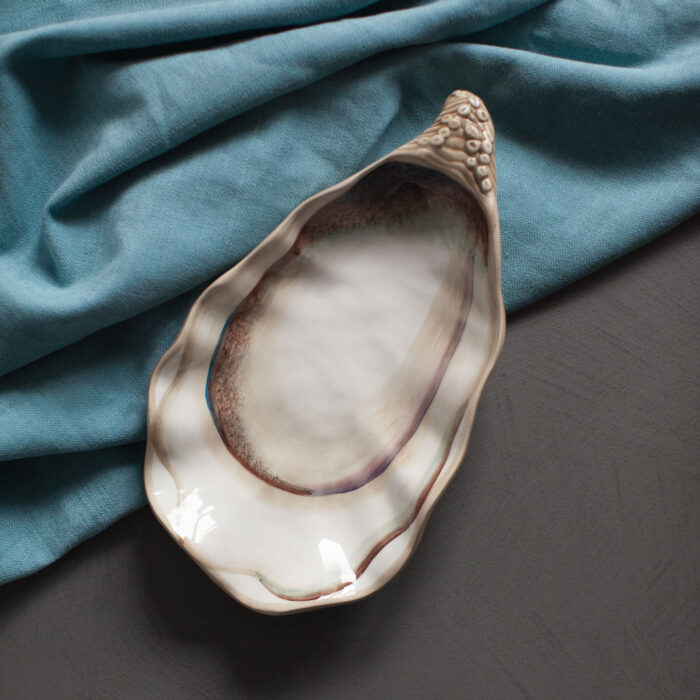 Perfetto per servire e gustare a regola d’arte ostriche, crostacei, pesce o caviale. Il vassoio riprende fedelmente l’ostrica nella sua forma e nei colori, per arricchire la tavola con eleganza e gusto.