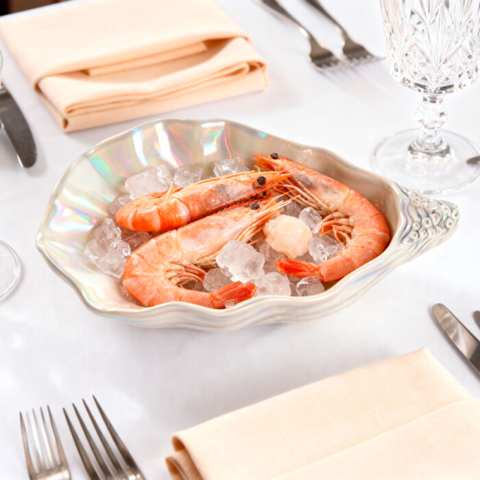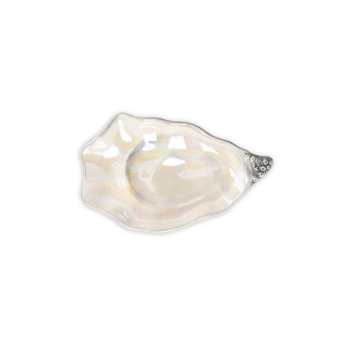 Perfetto per servire e gustare a regola d’arte ostriche, crostacei, pesce o caviale. Il vassoio riprende fedelmente l’ostrica nella sua forma con l’aggiunta di un effetto madreperla che lo rende ancora più prezioso.